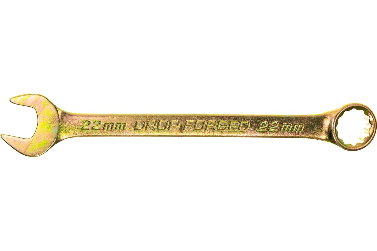 Комбинированный ключ Сибртех 14984, 22 мм, покрытый желтым цинком, предназначен для слесарно-монтажных работ с резьбовыми соединениями. Наличие рожкового и кольцевого зева делает ключ универсальным в применении. Накидная головка с 12-гранным профилем надежно удерживает крепеж, уменьшая риск его деформации. Ключ будет полезен при проведении строительных и ремонтных работ, пригодится для сборки и разборки оборудования, а также необходим в быту.