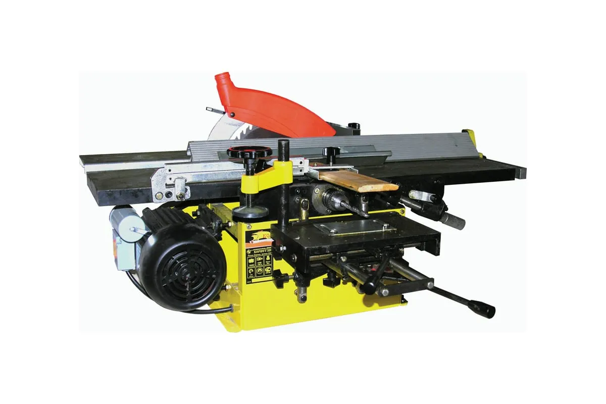 Комбинированный станок Энкор Корвет-320 93200 - это универсальный агрегат для реализации целого ряда задач по деревообработке. Станок выполняет строгание с направляющей, продольное и поперечное пиление с регулировкой вылета пильного диска и подвижным столом с упором и градусной шкалой, сверление отверстий и некоторые операции, связанные с фрезеровкой. Станок можно подключить к пылесосу, что делает работу более аккуратной. Небольшие габариты позволяют разместить его в тесных помещениях. Асинхронный двигатель и ременная передача создают низкий уровень шума.