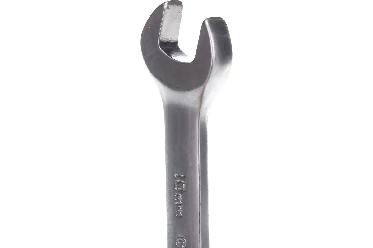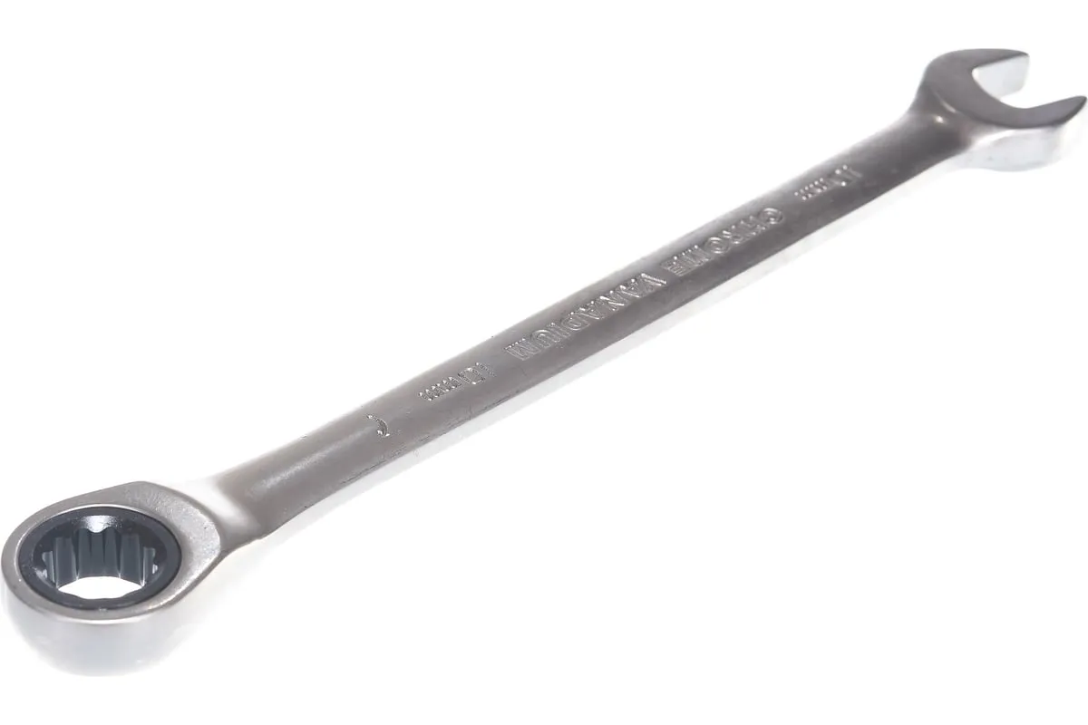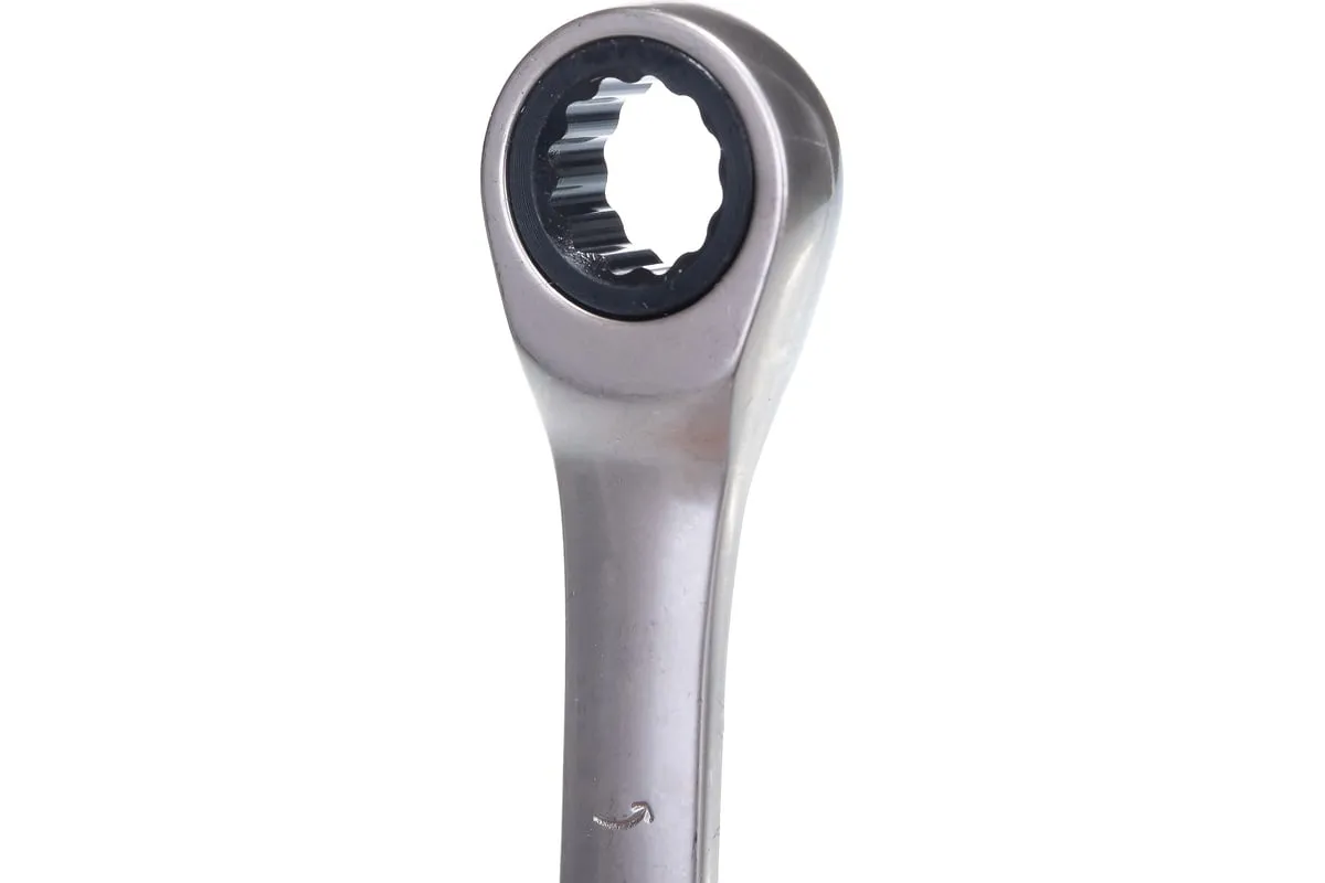 Комбинированный трещоточный ключ из хромованадиевой стали с надёжным 90-зубцовым храповым механизмом в накидной части. Ключ трещоточный ускоряет отворачивание и заворачивание крепежа как в обычных условиях, так и в условиях ограниченного пространства. Обеспечивает высокий крутящий момент и минимальный угол возврата — 4º.