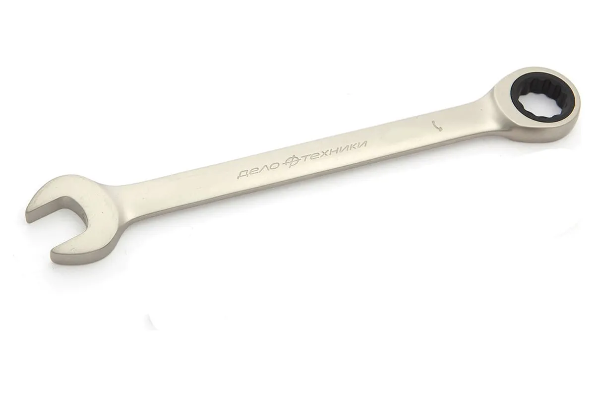 Комбинированный трещоточный ключ 22 мм ДТ 50/5 Дело Техники 515022 представляет собой простой в применении ручной инструмент, который предназначен для монтажа крепежных соединений. Корпус изготовлен из хромванадиевой стали, которая обладает стойкостью к большим нагрузкам. Инструмент оснащен рожковой головкой и трещоткой на 72-зуба, которая позволяет работать не перехватывая руки.