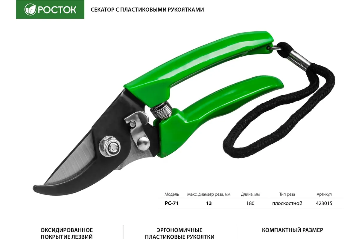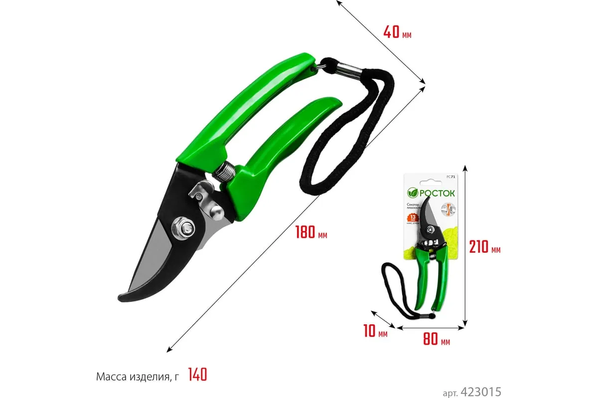 Секатор РОСТОК 423015, применяется для обрезки веток деревьев и кустарников, а также стеблей цветов.Оксидированное покрытие защищает лезвия от коррозии и препятствует налипанию грязи. Комбинированное рельефное лезвие значительно облегчает рез. Эргономичные рукоятки снижают утомление при выполнении работы.