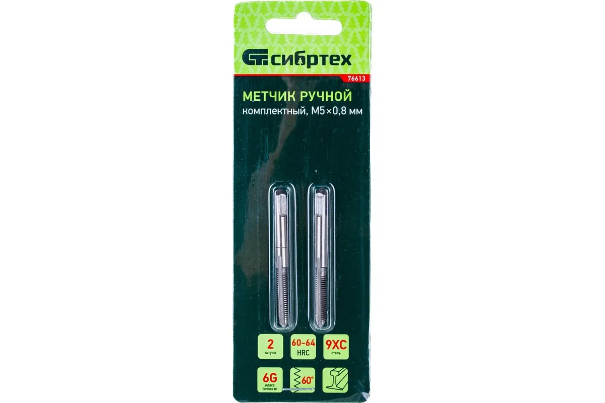 Комплект ручных метчиков М5 х 0,8 мм СИБРТЕХ 76613 представляет собой комплект из двух инструментов, предназначенных для нарезания сквозной внутренней резьбы. Данные метчики очень прочны и имеют большой ресурс использования за счет материала, из которого они изготовлены - инструментальной стали.