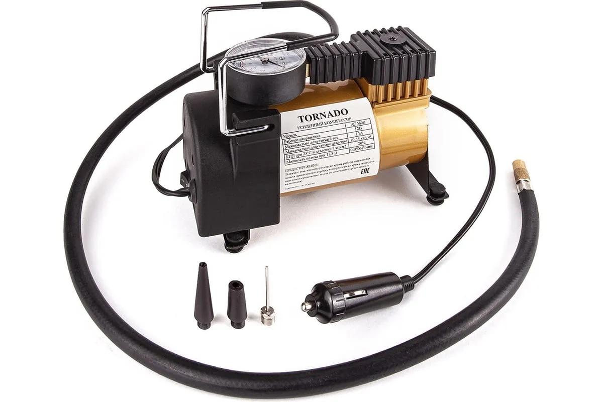 Компрессор AUTOVIRAZH TORNADO Standart AC-580B дополнен несколькими насадками, при помощи которых можно накачать мячи или надувные матрасы.