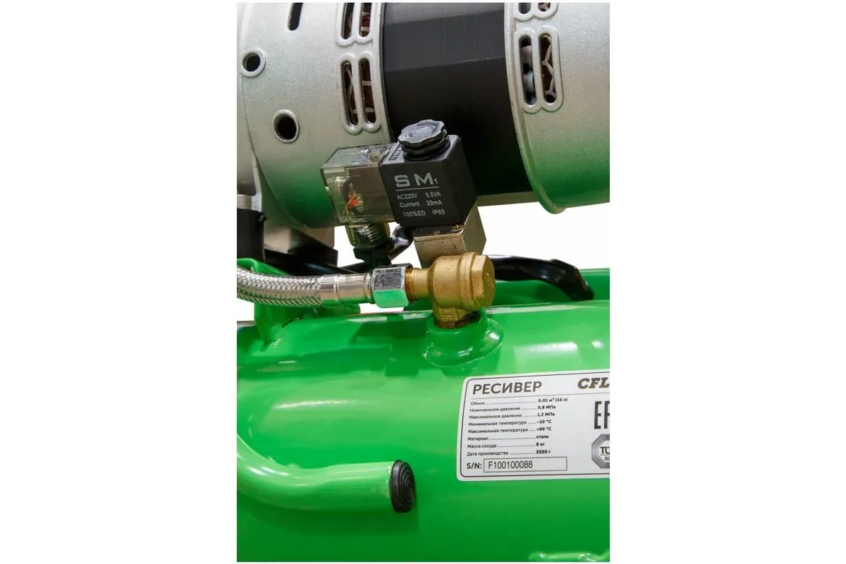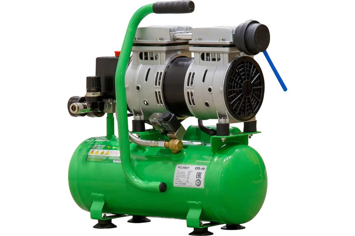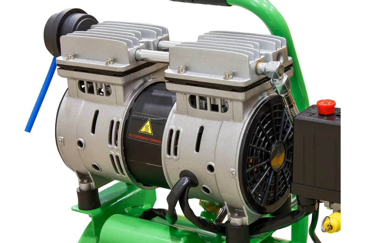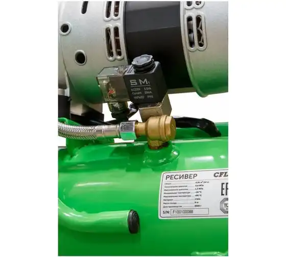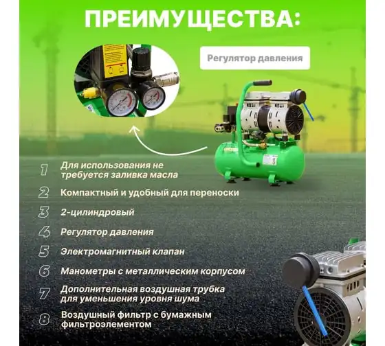 Благодаря прямому приводу, компрессор имеет низкую степень шума и вибрации и минимальную потребность в обслуживании. Для использования компрессора не требуется заливки масла.