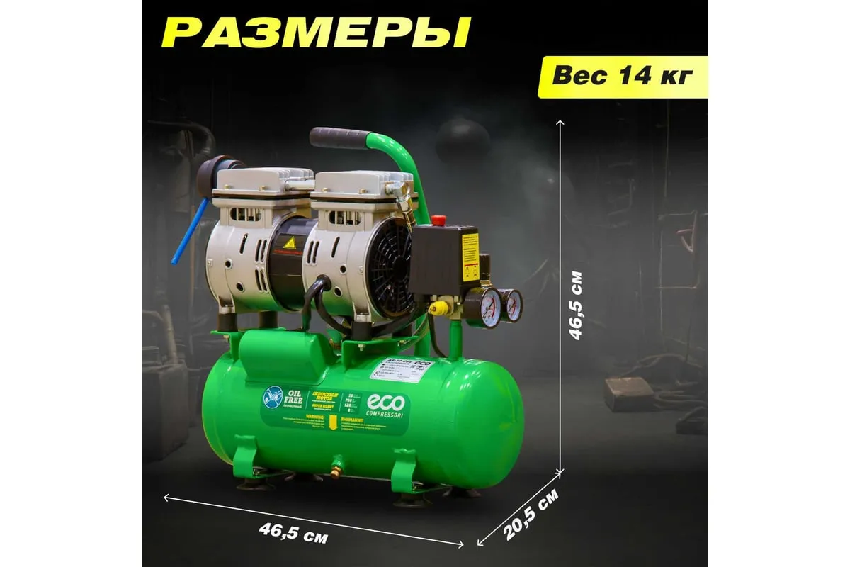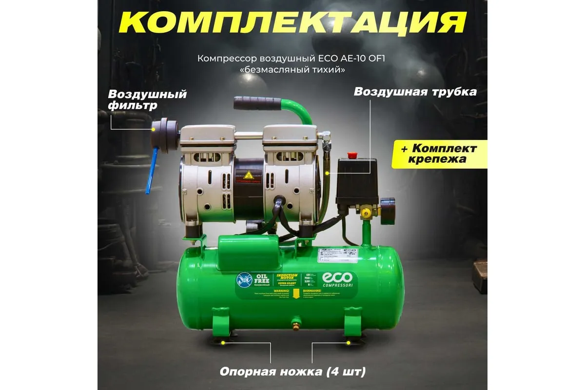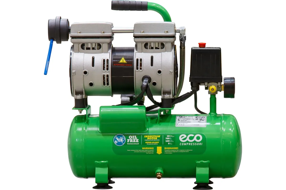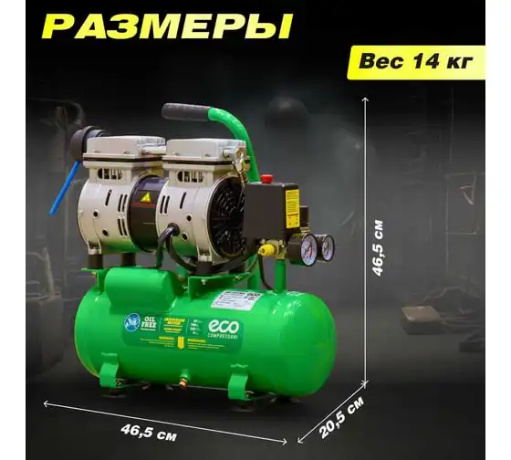 Компрессор ECO AE-10-OF1 предназначен для сжатия воздуха и подачи его в нужном направлении. Подходит для бытового использования в гараже или на даче.