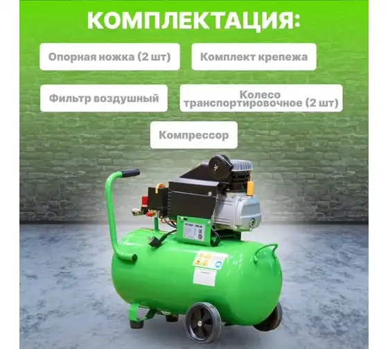 Контроль уровня масла осуществляется с помощью специального масляного глазка. Это позволит своевременно наполнить картер при недостаче масла. Благодаря прямому приводу, компрессор имеет низкую степень шума и вибрации и минимальную потребность в обслуживании.