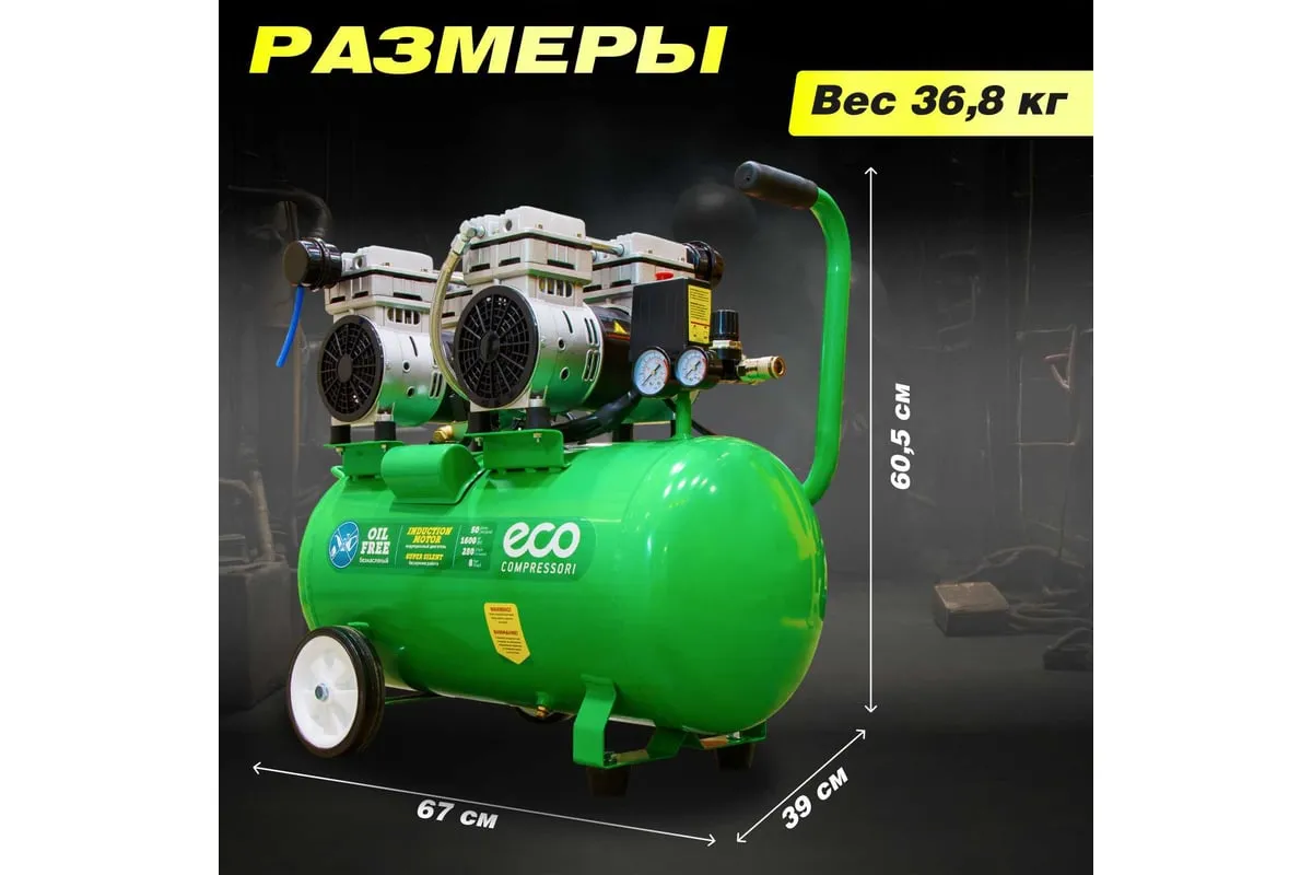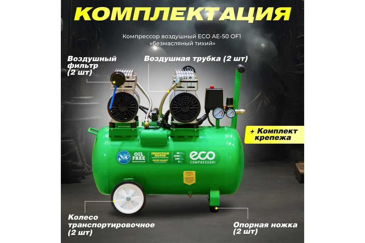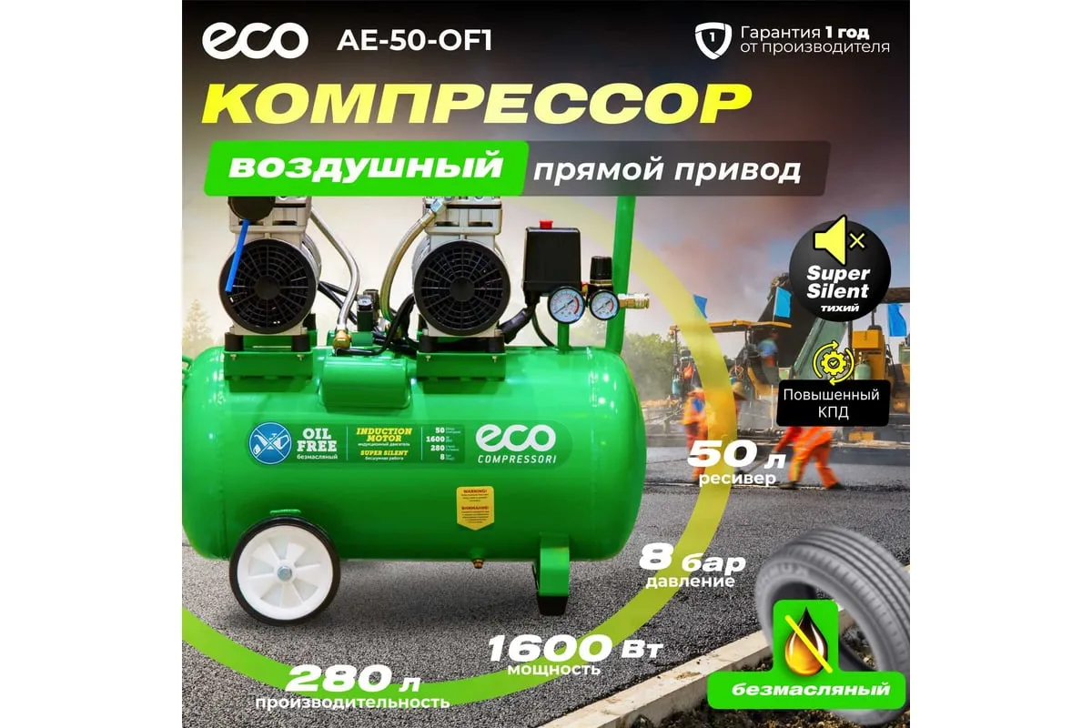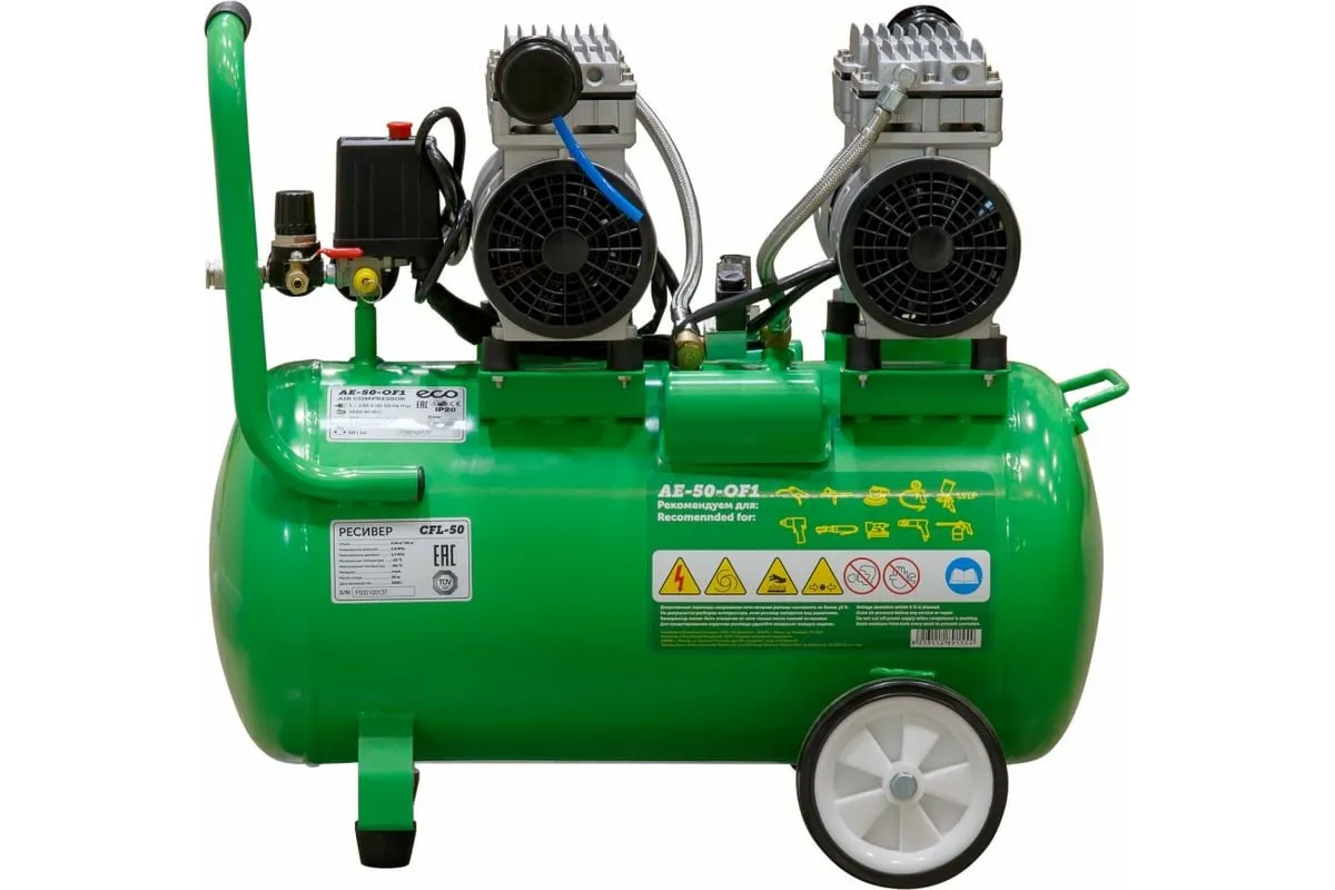 Компрессор ECO AE-50-OF1 предназначен для сжатия воздуха и подачи его в нужном направлении. Подходит для бытового использования в гараже или на даче.