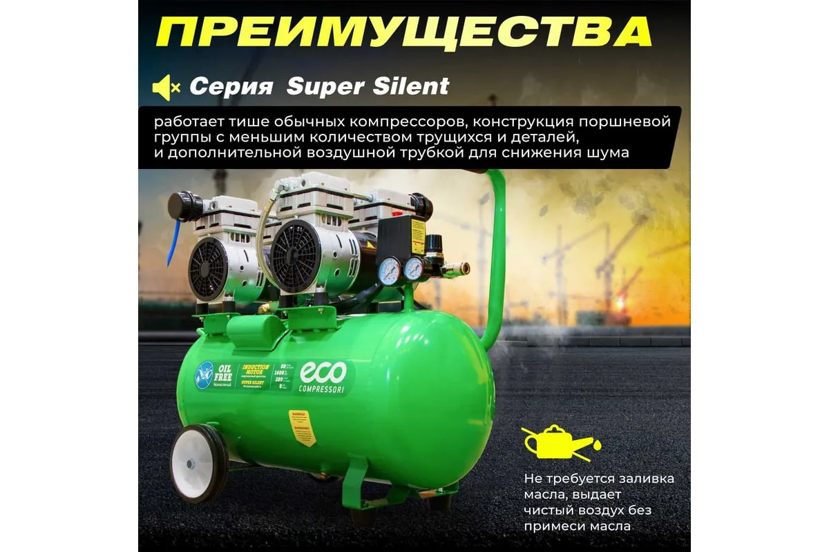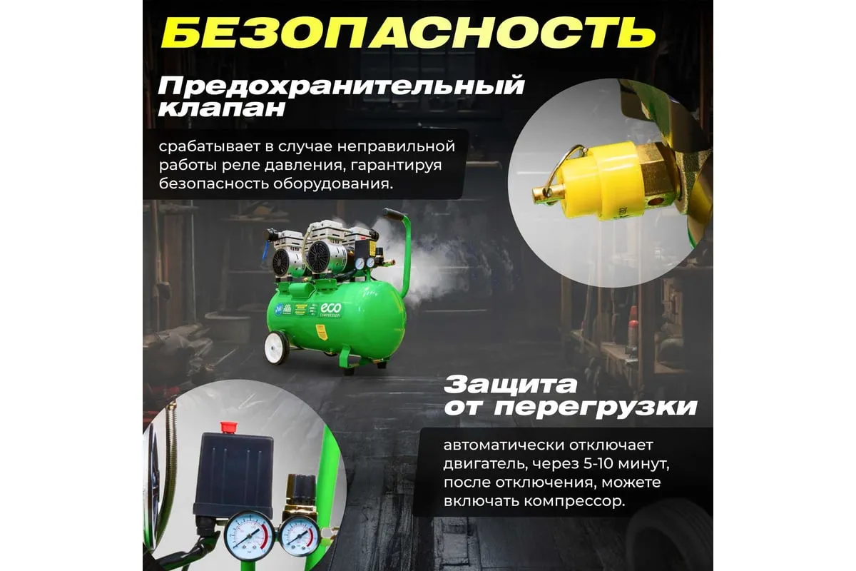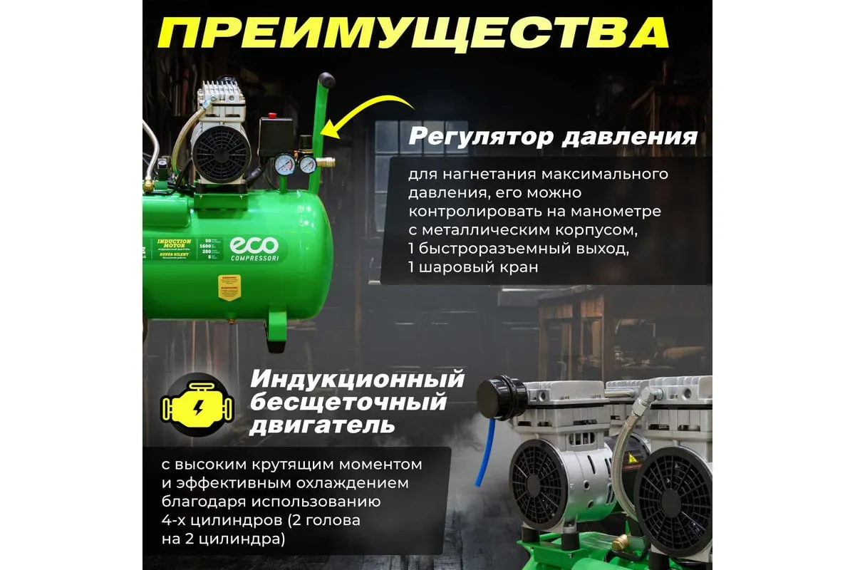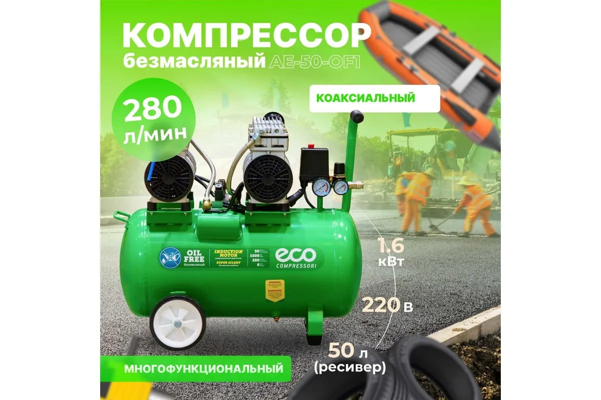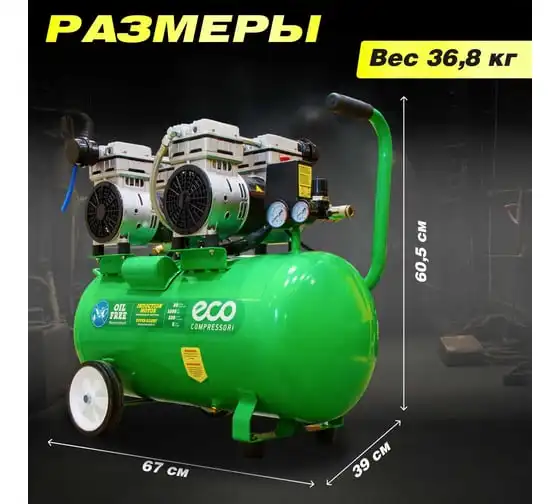 Компрессор ECO AE-50-OF1 предназначен для сжатия воздуха и подачи его в нужном направлении. Подходит для бытового использования в гараже или на даче.
