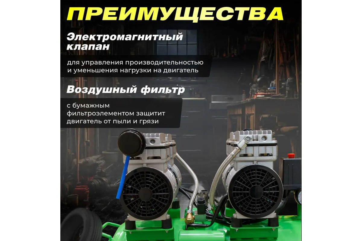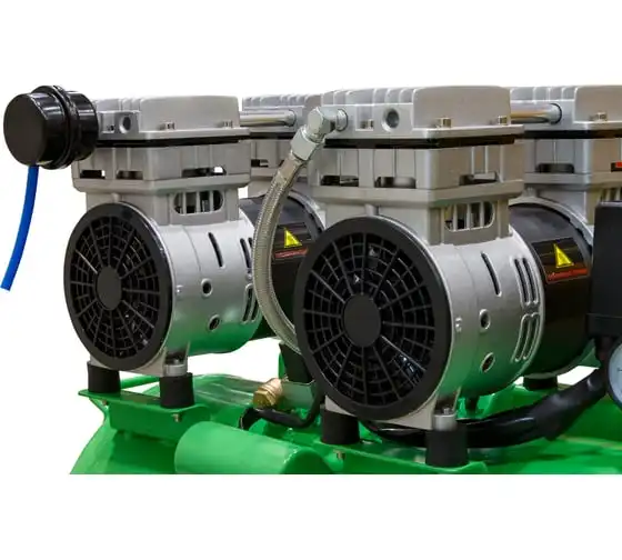Благодаря прямому приводу, компрессор имеет низкую степень шума и вибрации и минимальную потребность в обслуживании. Для использования компрессора не требуется заливки масла.