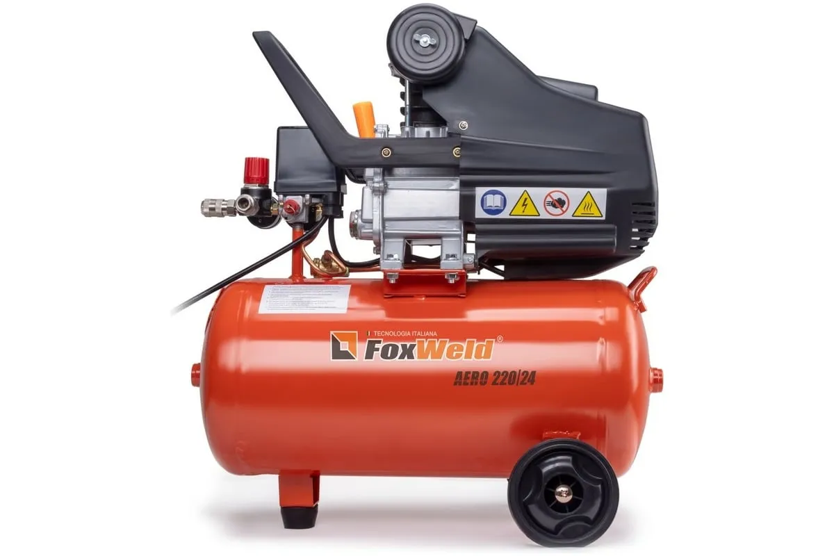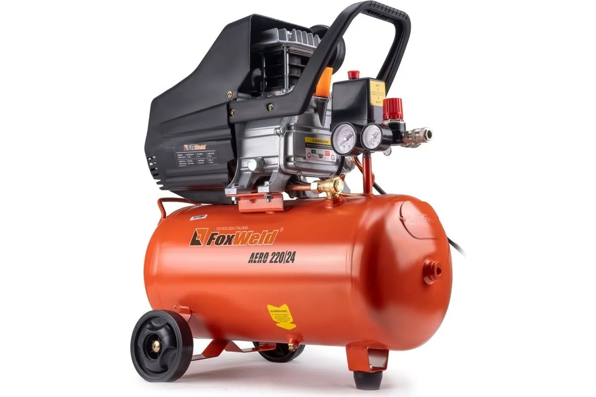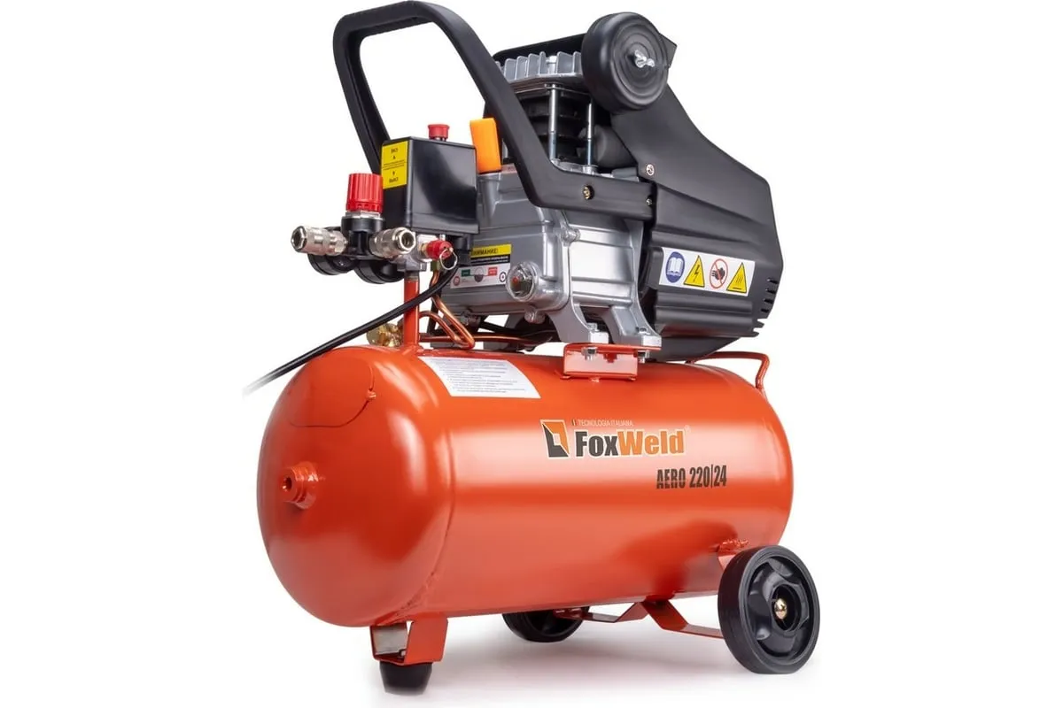 Компрессор Foxweld AERO 220/24 5069 обладает повышенной производительностью и длительным сроком службы. Все металлические детали поршневого механизма покрыты масляной пленкой, которая предотвращает их износ и повреждение узлов при контакте друг с другом. Модель масляного коаксиального компрессора с производительностью 220 л/мин подходит для работы с большинством типов пневмоинструментов и для накачки шин. Нетребовательный к условиям эксплуатации агрегат может использоваться дома, в гараже, на открытом воздухе. Данная модель компрессора уверенно запускается в условиях пониженного сетевого напряжения от 175 В. Для удобства транспортировки компрессор оснащен удобной ручкой и колесами. Для длительной работы достаточно поддерживать нужный уровень масла.