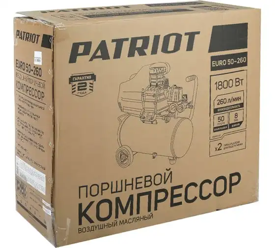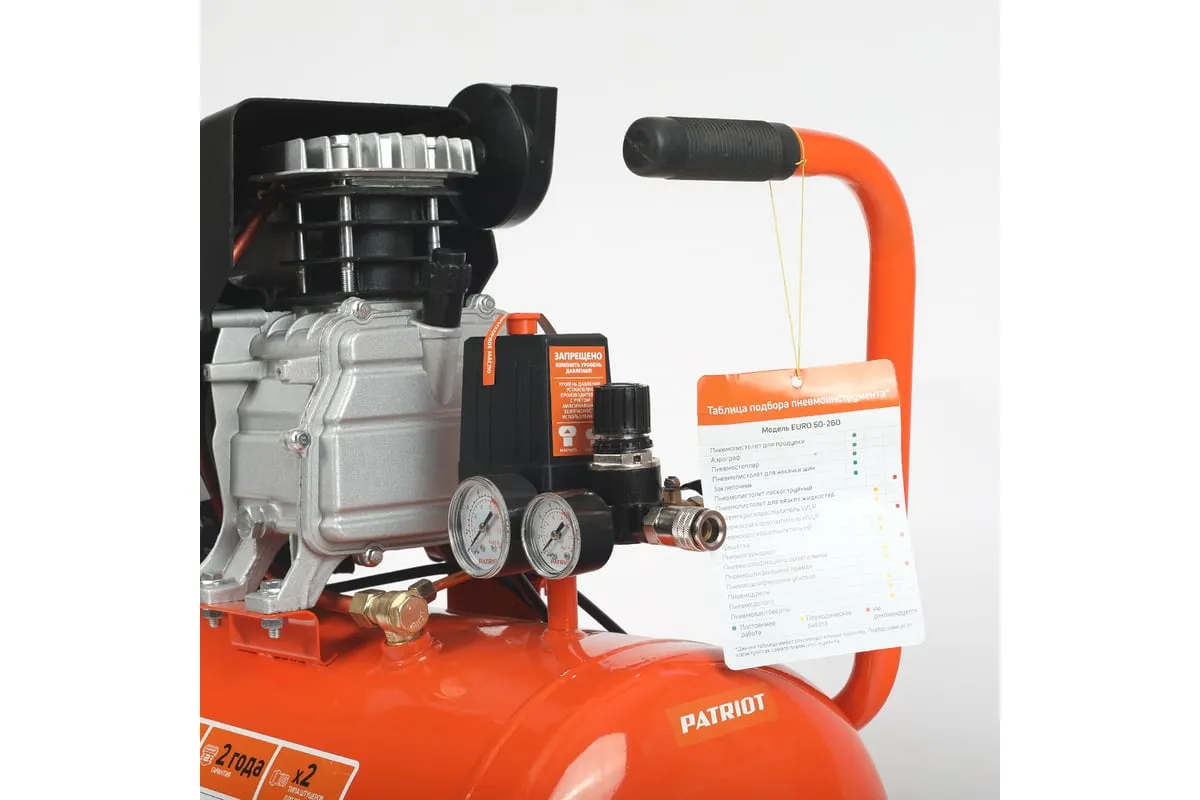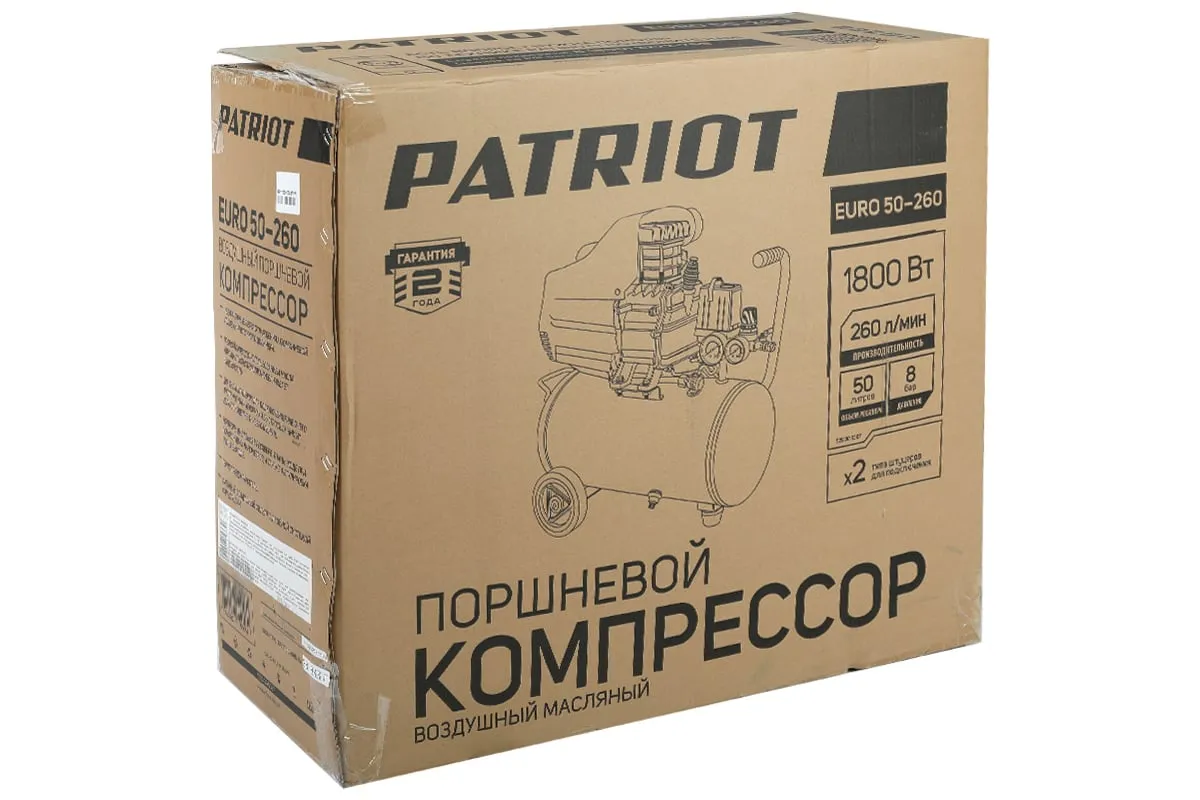 Компрессор PATRIOT EURO 50/260 525306367 - высококачественный аппарат, который используется в автосервисах и на различных предприятиях для нагнетания сжатого воздуха в различный пневмоинструмент. Двигатель компрессора закрыт специальным кожухом, который предотвращает его повреждение и загрязнение. Горизонтально расположенный ресивер окрашен краской, чем защищен от образования коррозии. Рукоятка специальной формы облегчает транспортировку.