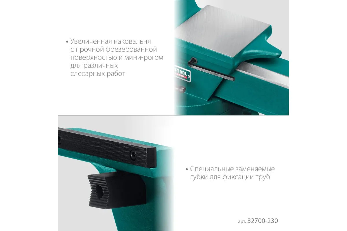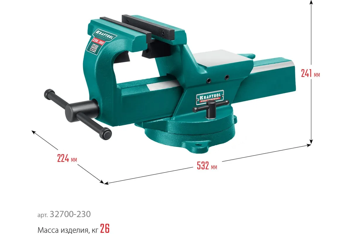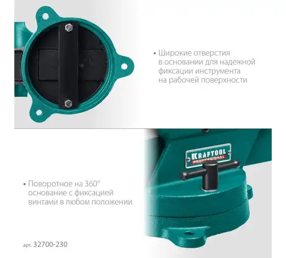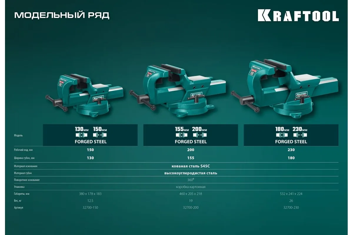 Кованые стальные тиски KRAFTOOL Forge-180/230 32700-230 предназначены для фиксации и удержания деталей при выполнении столярных и слесарных работ. Поворотное основание и наличие наковальни расширяют сферу применения устройства.