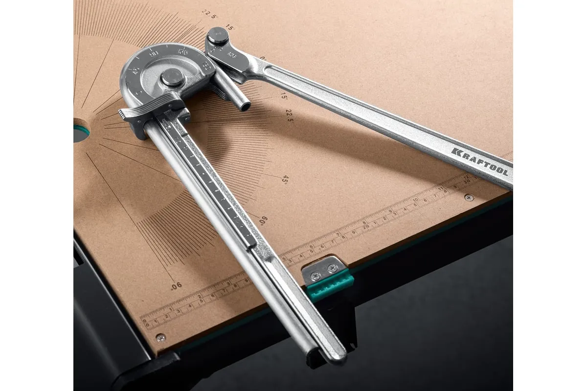 Двуручный рычажный кованый стальной трубогиб для труб из нержавеющей стали и цветных металлов под углом до 180°. Кованая стальная конструкция. Быстрое высвобождение трубы. Используется при монтаже систем водоснабжения, отопления и кондиционирования, систем подогрева пола, гидравлических систем. Применяется для высокоточной гибки труб из мягкой (отожженной) меди, алюминия, мягкой меди в оболочке, тонкостенной стали и нержавеющей стали под углом до 180°.