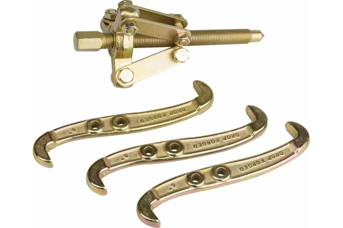 Кованый съемник подшипников, трехзахватный, 75мм STAYER 43220-075 используется для демонтажа подшипников различного внутреннего и внешнего диаметров. Корпус изготовлен из усиленной кованной стали и оснащен тремя регулируемыми лапками, которые можно устанавливать на нужную величину. Съемник способен выдерживать большие нагрузки. Внешний диаметр демонтируемых деталей от 15 до 80 мм, внутренний диаметр демонтируемой детали от 35 до 60 мм. Имеет упорный болт со стандартным шестигранником под гаечный ключ и специальной резьбой и центровочную опору. Рабочий ход болта 75 мм.