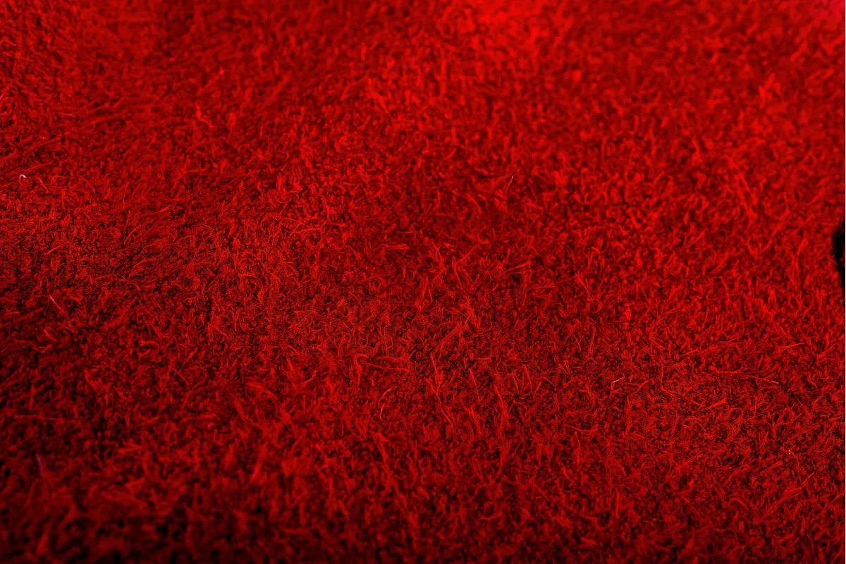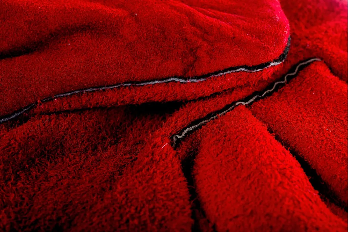 Краги изготовлены из спилка красного цвета.