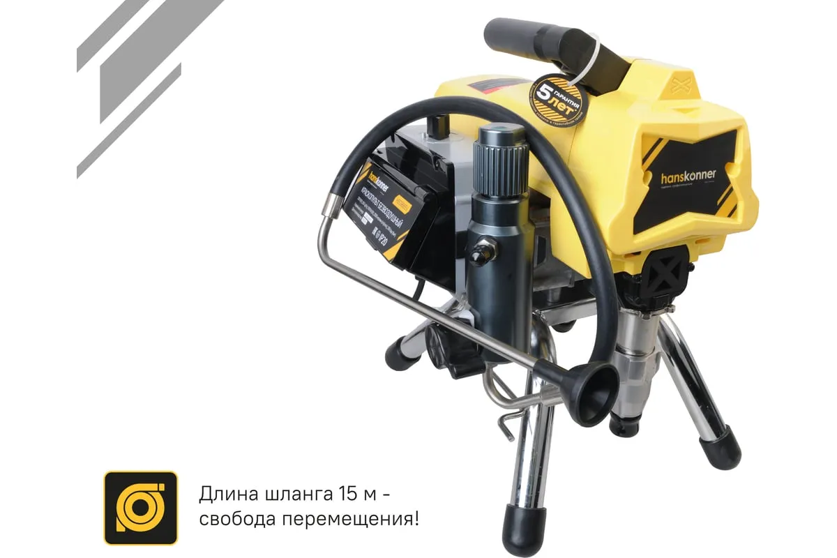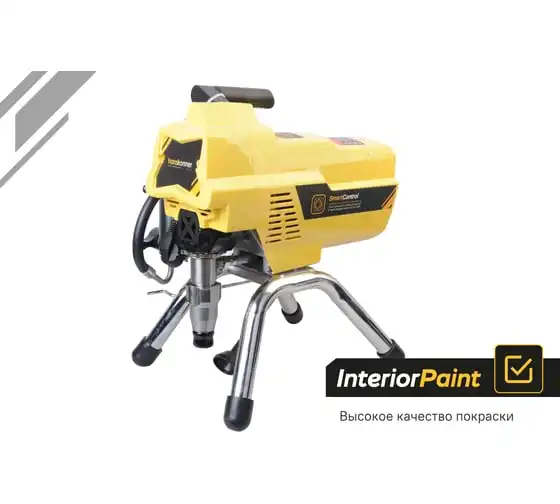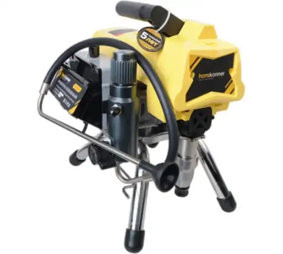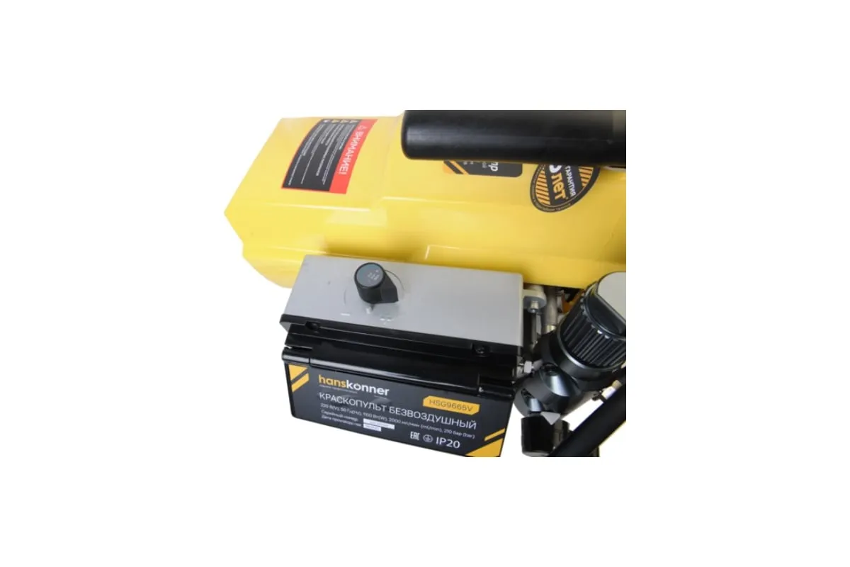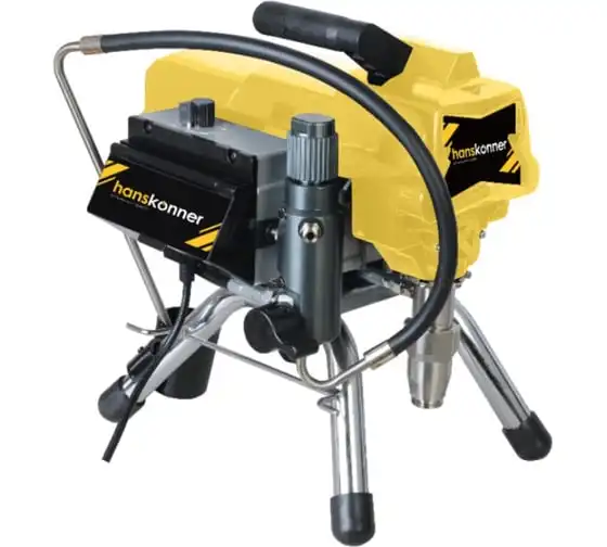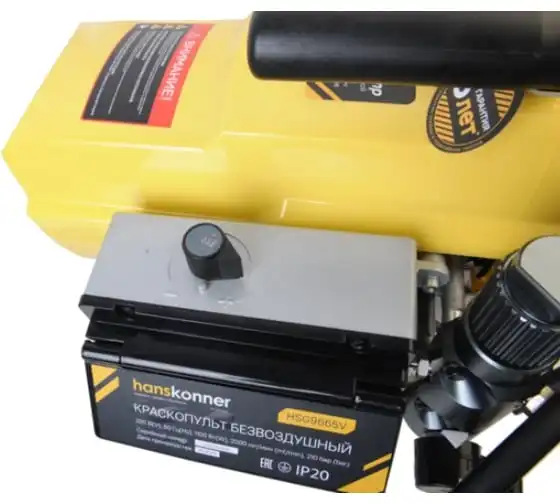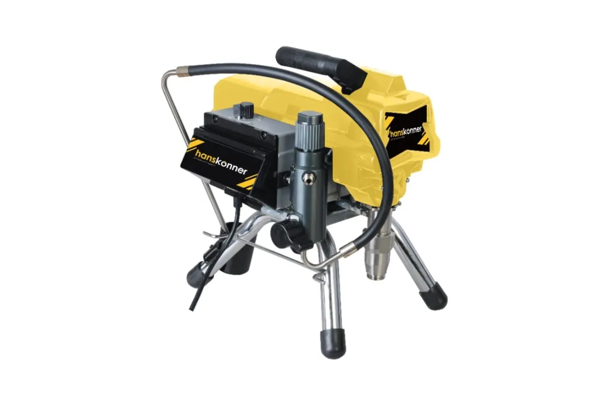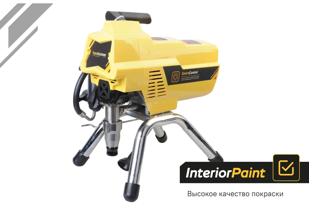 Краскопульт электрический безвоздушный HANSKONNER HSG9665V - надежный и продуктивный электроинструмент для нанесения лакокрасочных материалов без использования сжатого воздуха. Из-за большого перепада давления, от 210 Бар в насосе до атмосферного в пространстве, лакокрасочный материал дробиться на мельчайшие частицы и в виде аэрозольного факела оседает на окрашиваемой поверхности. Данная модель отличается электронной системой управления давлением SmartControl, что содействует качественному окрашиванию и дает возможность осуществлять интерьерную покраску. Для удобного регулирования продуктивности есть электронный дисплей. Дополнительный фильтр для очистки краски исключает частое засорение сопла.
