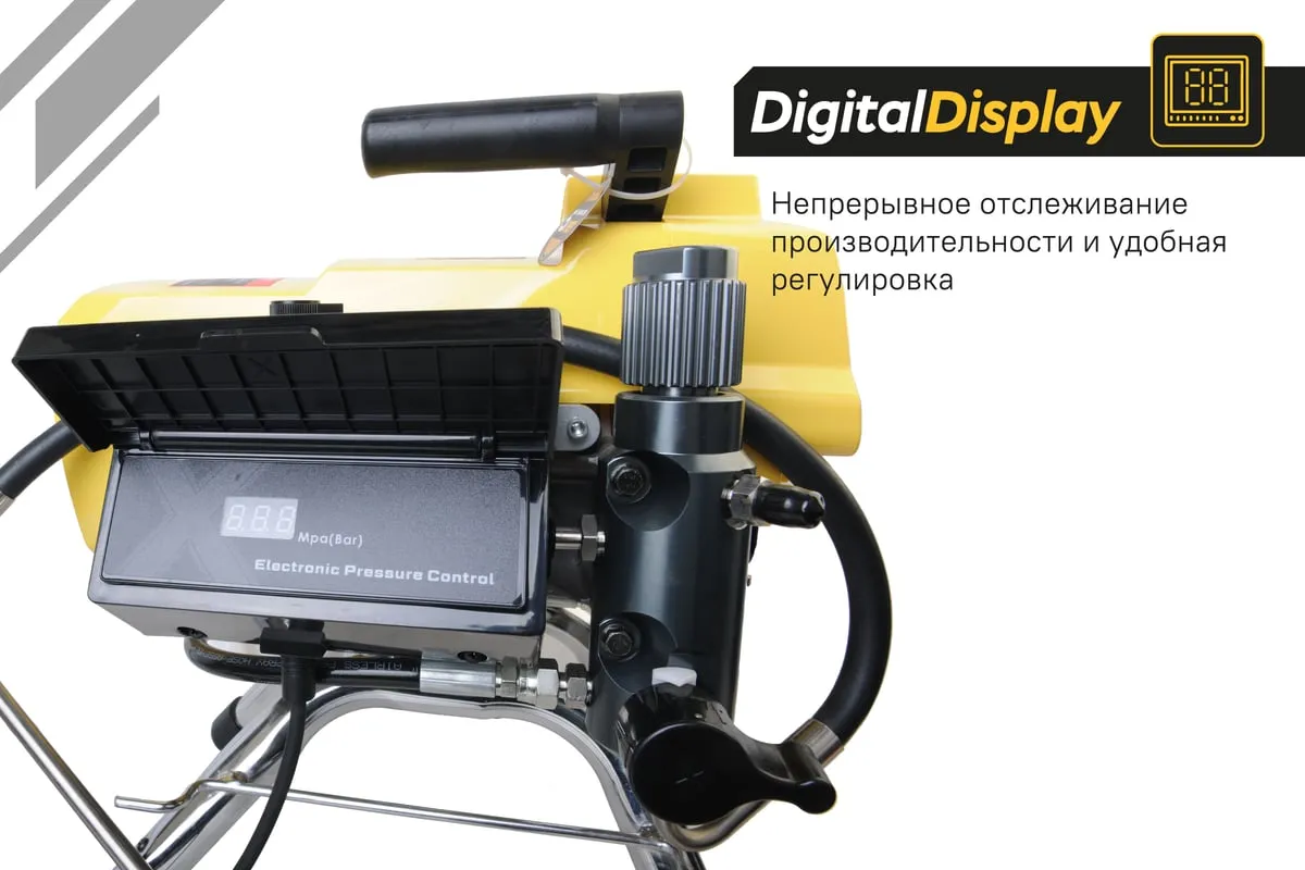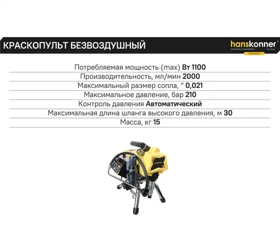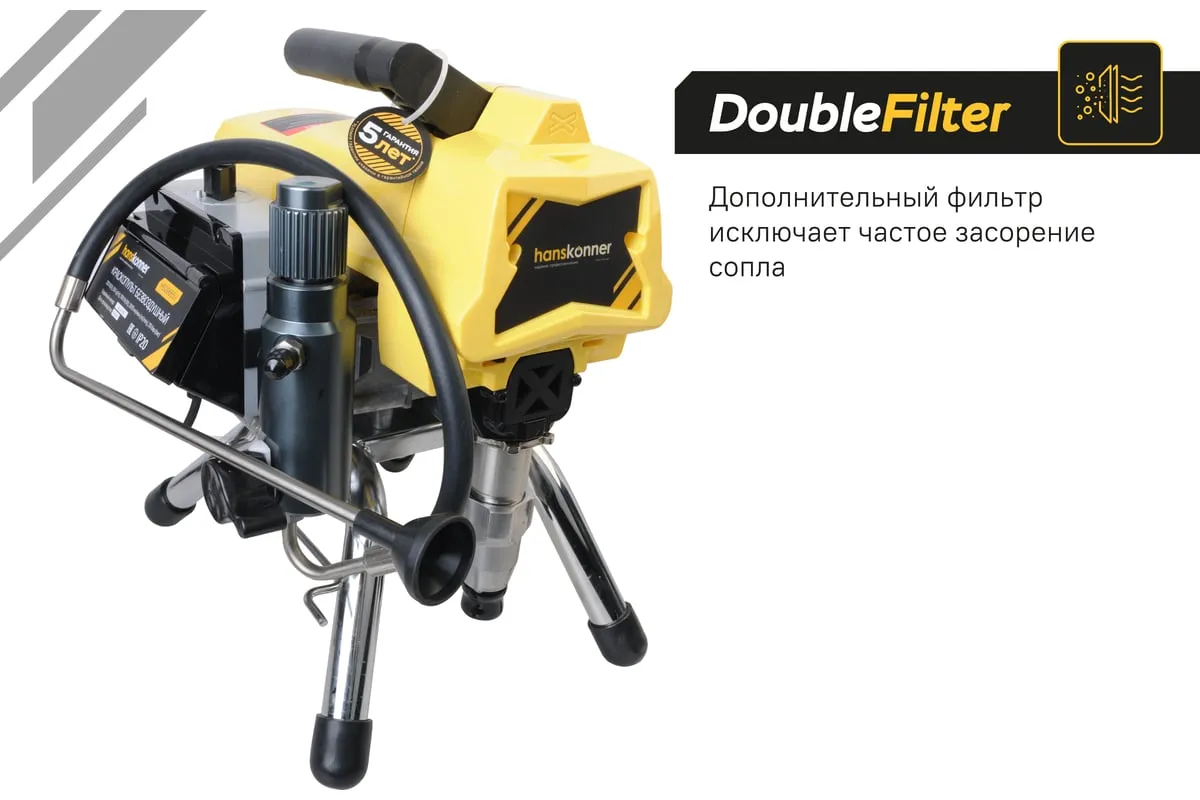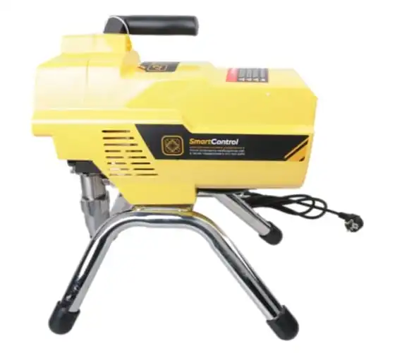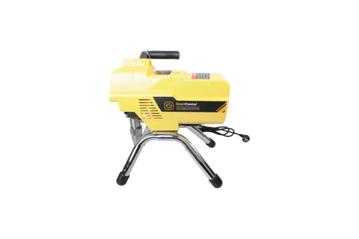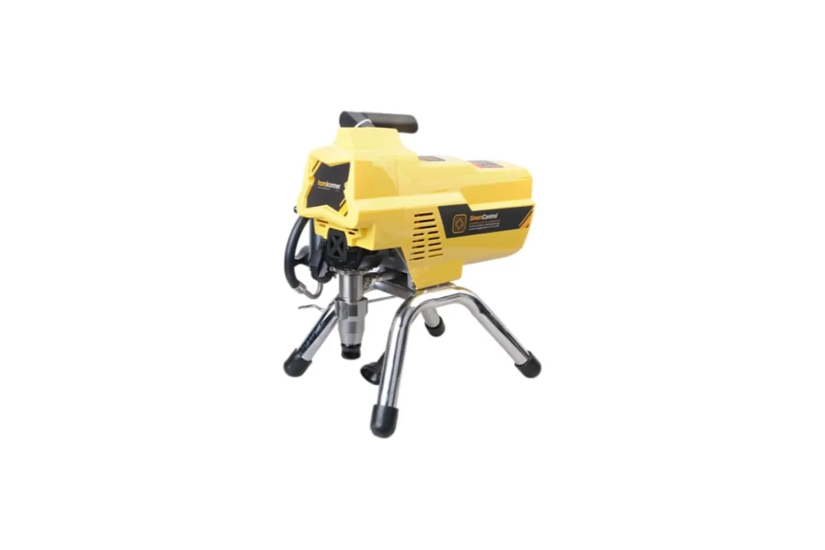 Краскопульт электрический безвоздушный HANSKONNER HSG9665V - надежный и продуктивный электроинструмент для нанесения лакокрасочных материалов без использования сжатого воздуха. Из-за большого перепада давления, от 210 Бар в насосе до атмосферного в пространстве, лакокрасочный материал дробиться на мельчайшие частицы и в виде аэрозольного факела оседает на окрашиваемой поверхности. Данная модель отличается электронной системой управления давлением SmartControl, что содействует качественному окрашиванию и дает возможность осуществлять интерьерную покраску. Для удобного регулирования продуктивности есть электронный дисплей. Дополнительный фильтр для очистки краски исключает частое засорение сопла.