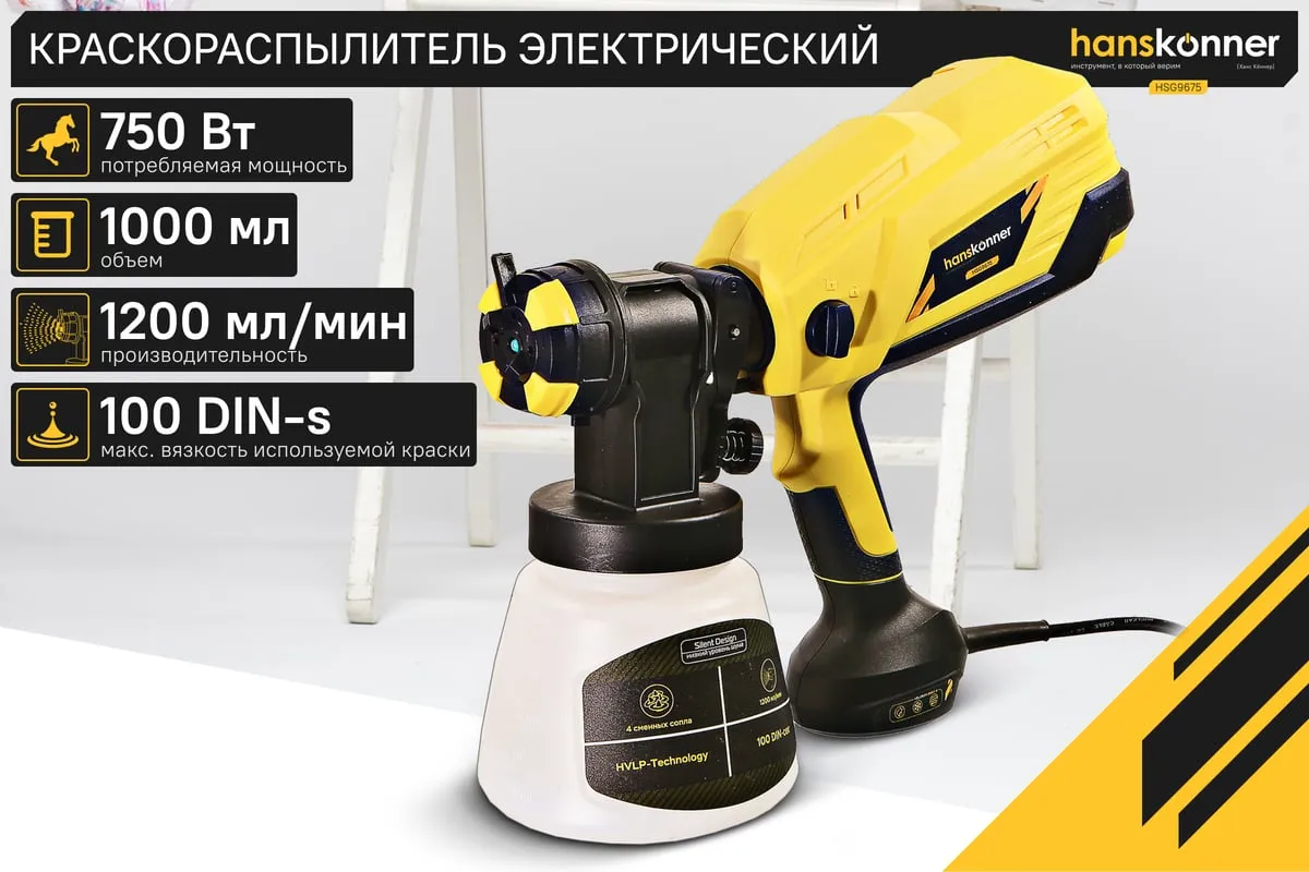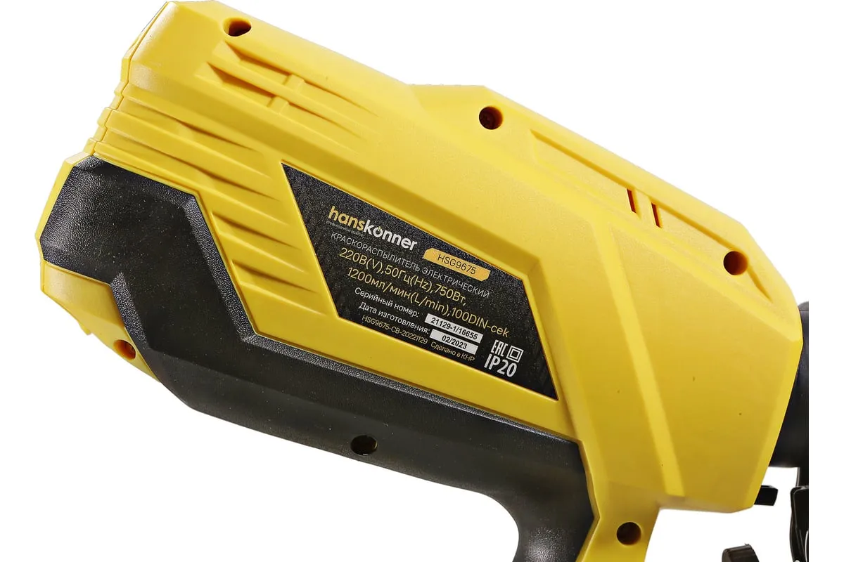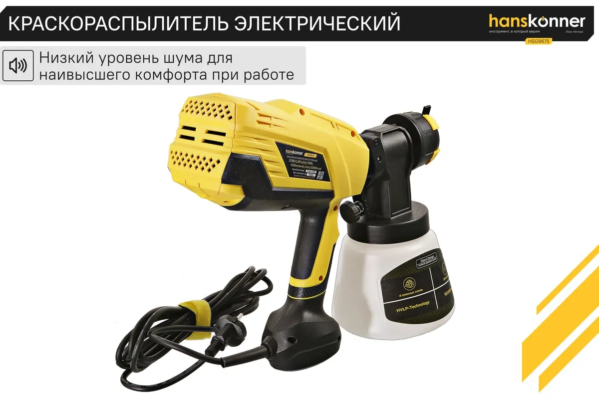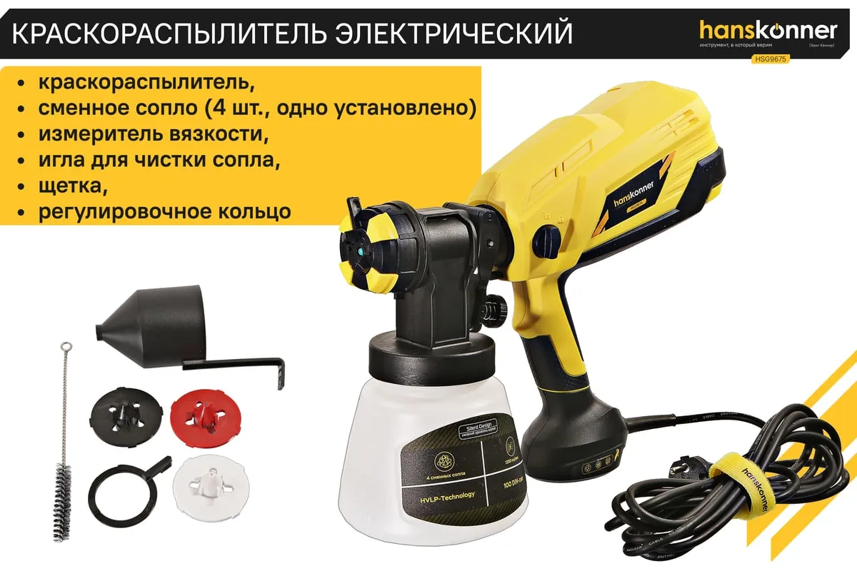Краскопульт Hanskonner HSG9675 имеет высокую продуктивность – 1200 мл/мин. Работает с наиболее вязкими материалами: масляные краски, олифы, шпаклевки, эмали, краски на водной основе и многими другими материалами. Модель регулирует количества подачи лакокрасочных материалов. Низкий уровень шума гарантируетнаивысший комфорт при работе. Мягкий резиновый сетевой кабель для удобства увеличен до 4м и снабжен липучкой велкродля удобного хранения.