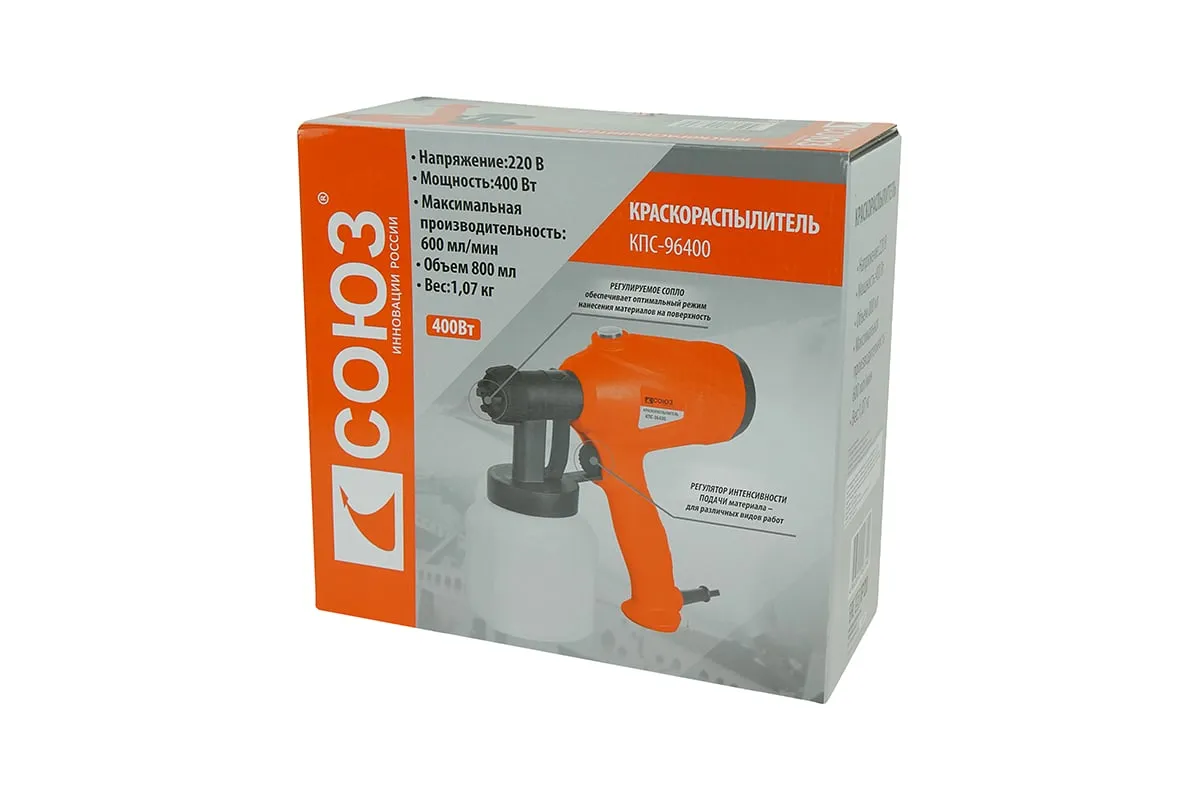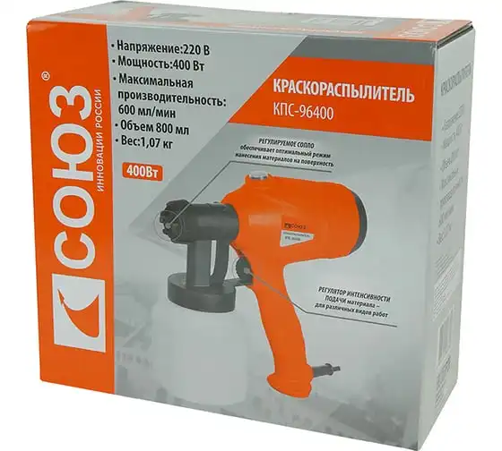 Краскопульт Союз КПС-96400 предназначен для покрытия различных поверхностей лакокрасочными материалами.