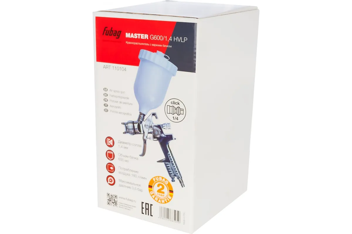 Краскораспылитель FUBAG G600/1.4 HVLP 110104 предназначен для осуществления покрасочных работ. Бак краскопульта располагается сверху и способен вместить в себя 0,6 литра краски. Диаметр сопла данной модели составляет 1,4 мм. Металлическая конструкция пистолета говорит о его надежности. Соединение - рапид.