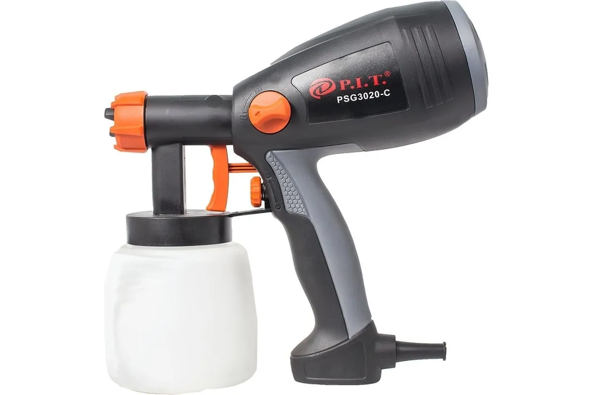 Краскораспылитель P.I.T. МАСТЕР PSG3020-C служит для окрашивания небольших поверхностей. Его конструкция состоит из электродвигателя с компрессорным механизмом, подающим воздух к форсунке. Наличие специального регулятора позволяет изменять расход воздуха и распыляемого материала. Бачок краскораспылителя располагается снизу, что открывает лучший обзор рабочей области.