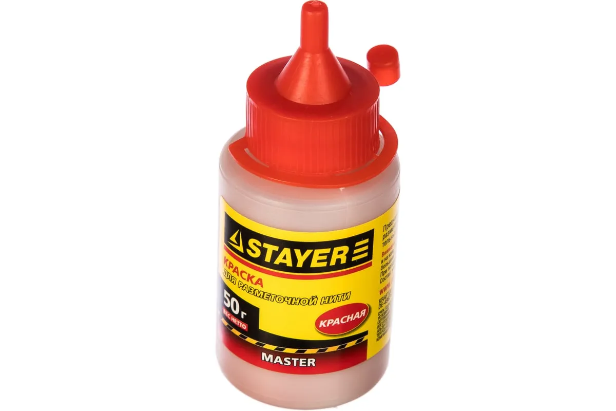Красная краска для разметочных шнуров 50 г STAYER 0640-2_z01 применяется в сфере строительных работ для разметки поверхностей. Предназначена для окрашивания малярных шнуров и нитей.