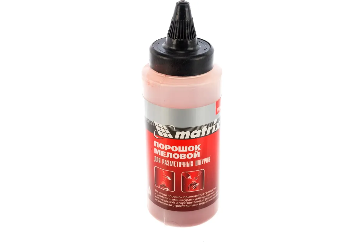Красный меловой порошок для разметочных шнуров 115 г MATRIX 84858 используется в сфере строительных работ для заправки малярных шнуров и возможности легкой и быстрой разметки поверхностей.