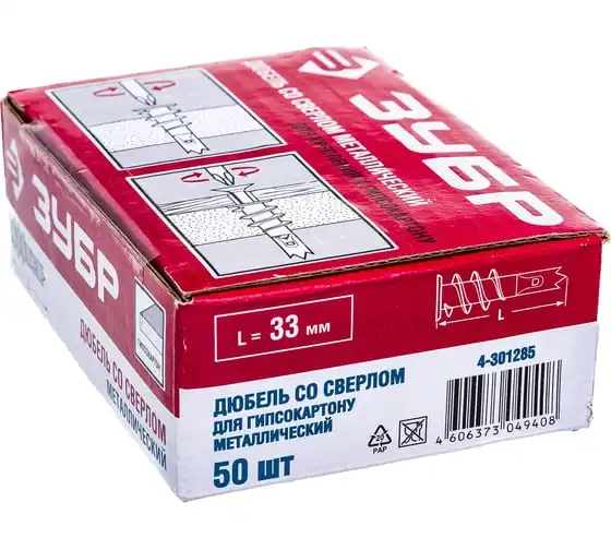 Дюбель для гипсокартона 50 шт. (33 мм; ТФ5) ЗУБР 4-301285
