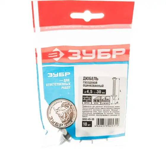 Гвоздевой дюбель ЗУБР 30 x 4.5 мм 10 шт. 3063-45-30