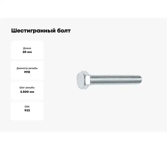 Шестигранный болт STARFIX М18x30 мм, цинк, класс прочности 5.8, DIN 933, 10 шт. в картонной упаковке SMC1-25483-10