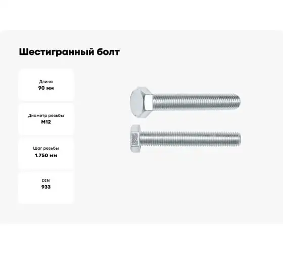 Шестигранный болт STARFIX М16x90 мм, цинк, класс прочности 5.8, DIN 933, 10 шт. SMC2-23543-10