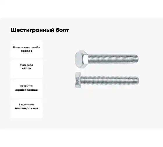 Шестигранный болт STARFIX М16x80 мм, цинк, класс прочности 5.8, DIN 933, 10 шт. SMC1-23533-10