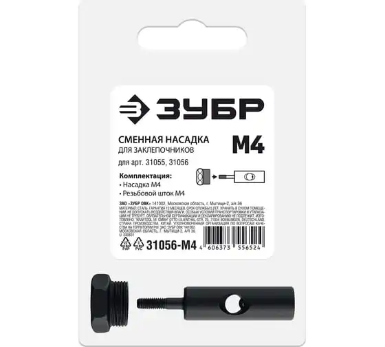 Сменная насадка ЗУБР М4, для заклепочников 31055, 31056 31056-M4