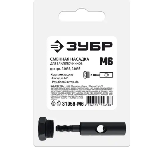 Сменная насадка ЗУБР М6, для заклепочников 31055, 31056 31056-M6