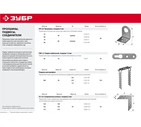 Подвес для профиля ЗУБР ПП-1.0 290x27 х 1.0 мм, цинк 31041-10