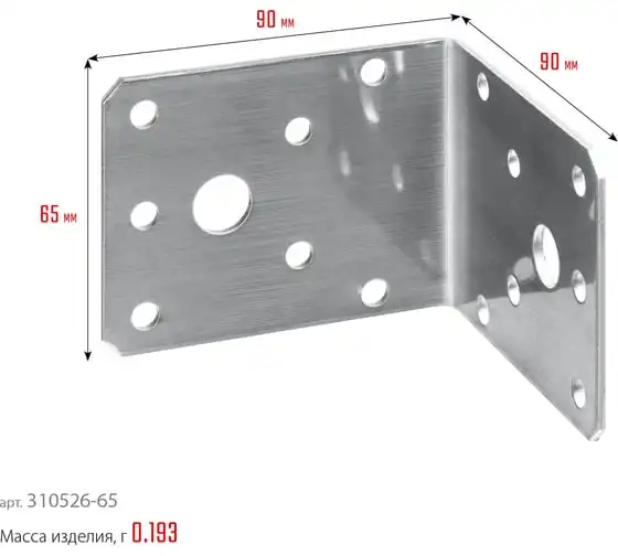 Крепежный угол Зубр МАСТЕР 65х90х90мм, 1шт 310126-65-090