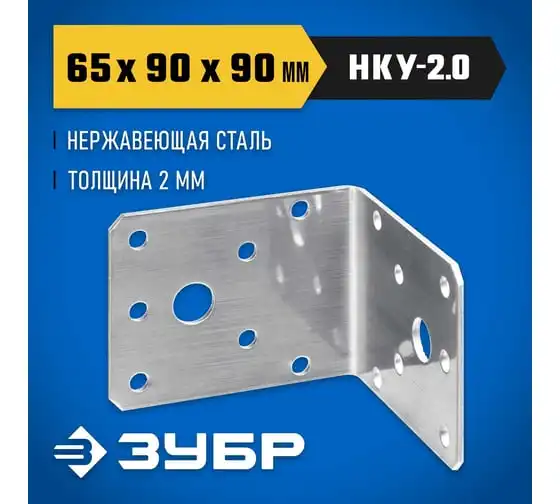 Нержавеющий крепежный уголок ЗУБР 65x90x90x2 мм, нку-2.0 310526-65