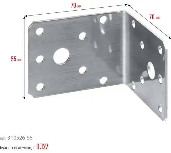 Крепежный угол Зубр МАСТЕР 55х70х70мм 1шт 310126-55-070