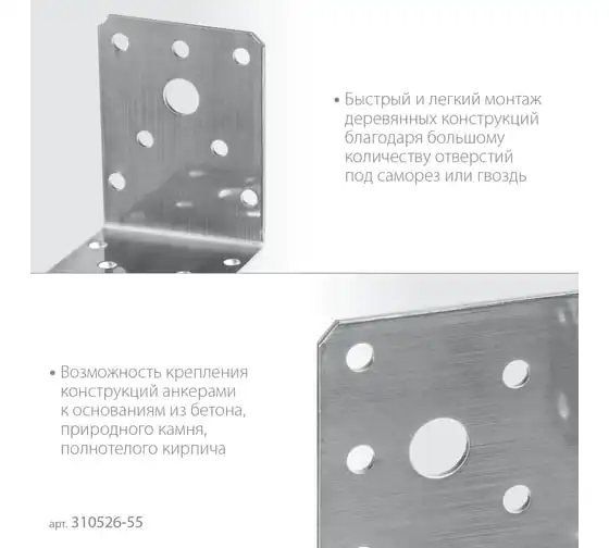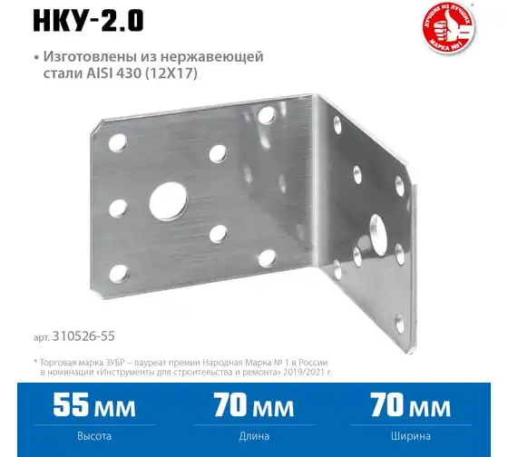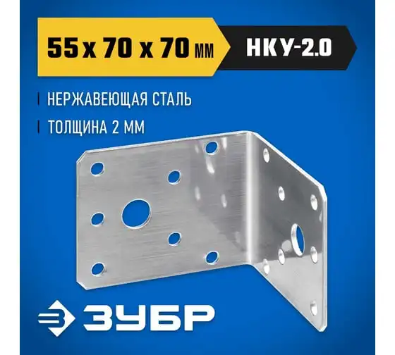 Нержавеющий крепежный уголок ЗУБР 55x70x70x2 мм, нку-2.0 310526-55