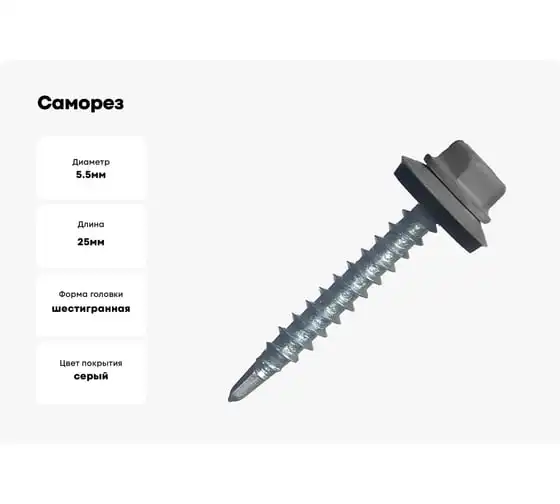 Саморез кровельный STARFIX 5.5x25 мм цинк, шайба с прокладкой, PT3, RAL 7024, 50 шт. SMP2-32502-50
