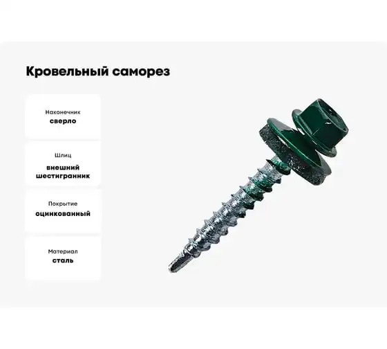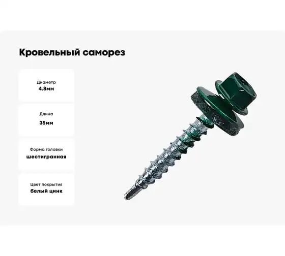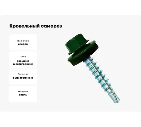 Кровельный саморез STARFIX 4,8x35 мм, цинк, шайба с прокладкой, PT1, RAL 6005, 200 шт. SMC2-65468-200