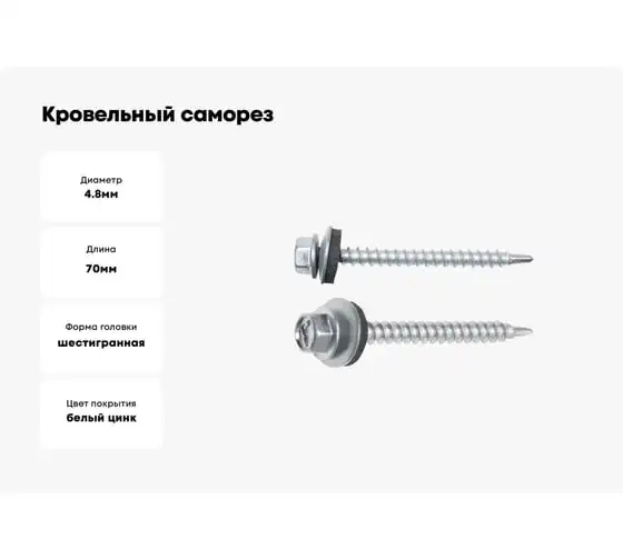 Кровельный саморез STARFIX 4,8x70 мм, цинк, шайба с прокладкой, PT1, 30 шт. SMP2-83854-30