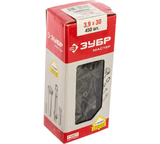 Саморезы с двухзаходной резьбой Зубр по ГВЛ, ДСП, фосфатированные, PH2, 3,9x30мм, ТФ1, 450шт 4-300051-39-030