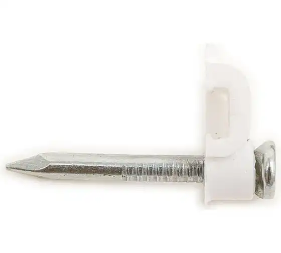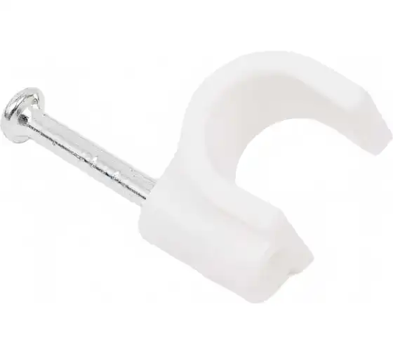 Скоба с гвоздем для крепления круглого кабеля STARFIX 6 мм, белая, 50 шт. SMZ2-35834-50