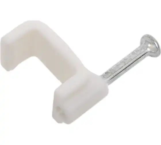 Скоба для крепления прямоугольного кабеля STARFIX 8 мм белая с гвоздем, 50 штук SMZ2-85224-50