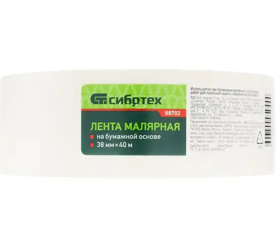 Малярная лента СИБРТЕХ 38 мм х 40 м, на бумажной основе 88702