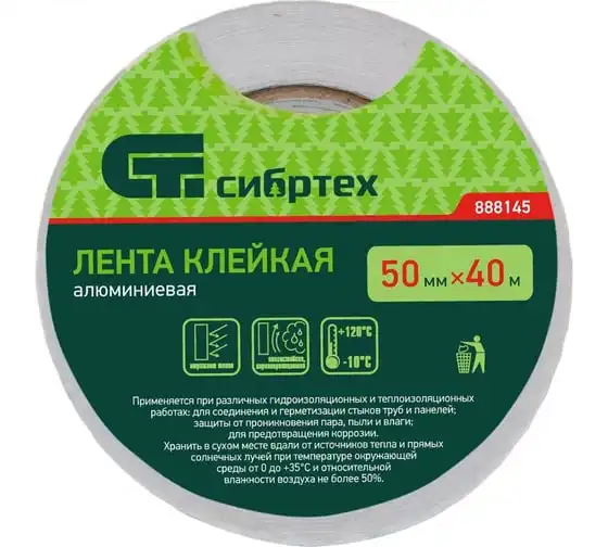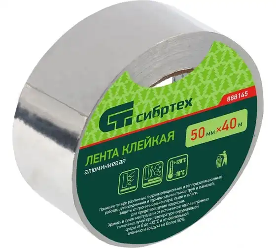 Клейкая алюминиевая лента СИБРТЕХ 50 мм х 40 м 888145