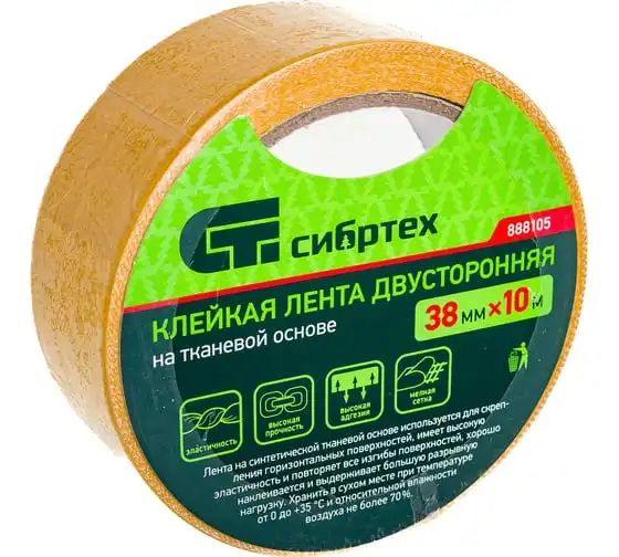 Двусторонняя клейкая лента на тканевой основе СИБРТЕХ 38 мм х 25 м 888115