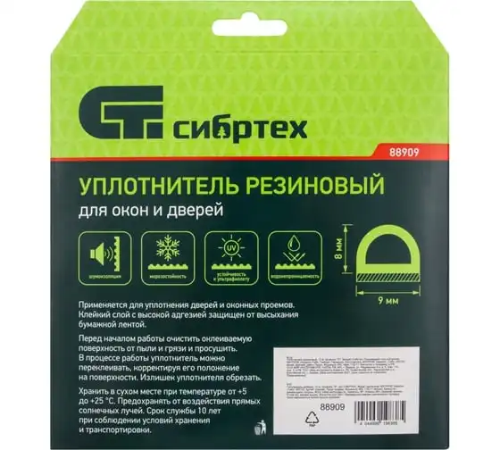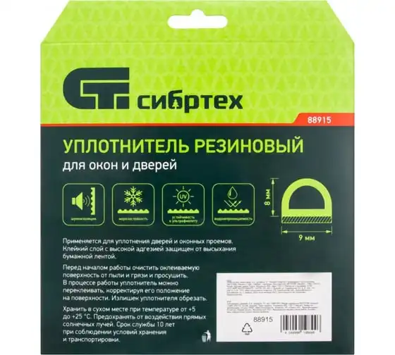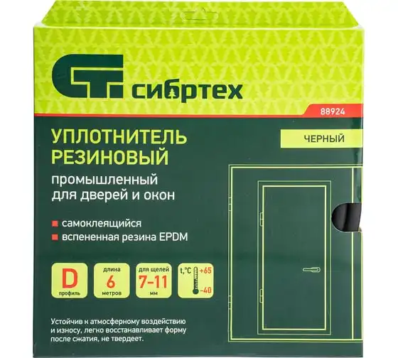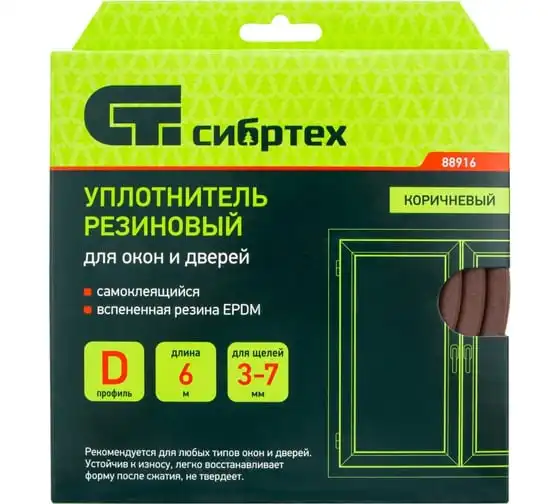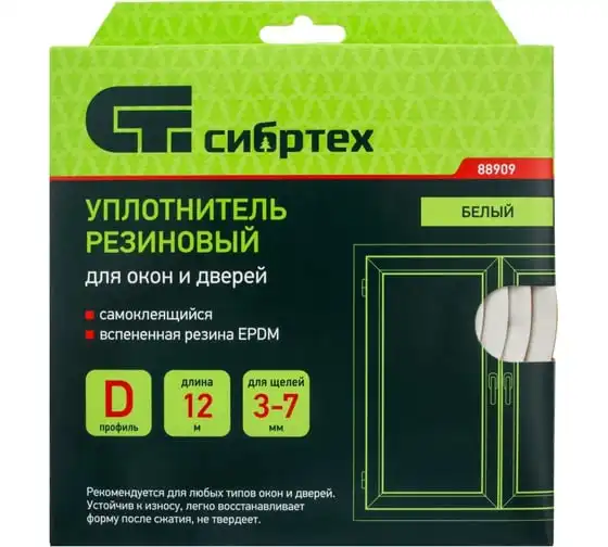 Резиновый уплотнитель СИБРТЕХ (12 м; профиль D; белый) 88909