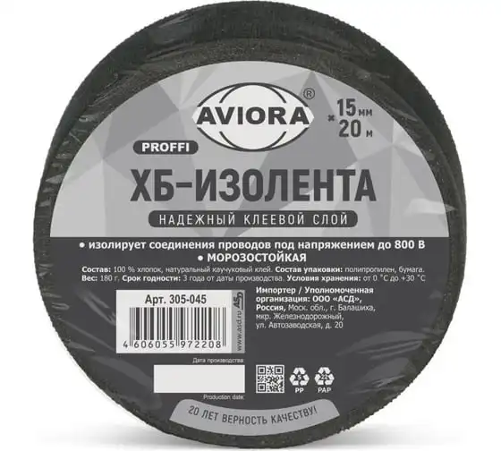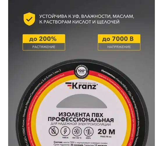 Профессиональная изолента ПВХ KRANZ 0,18х19 мм, 20 м, черная KR-09-2806